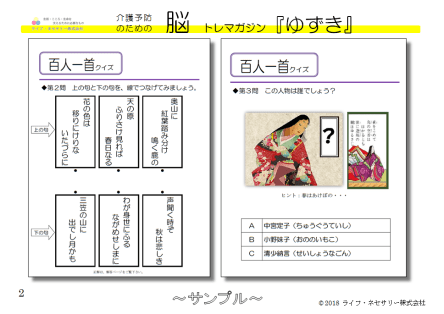 脳トレサンプル表紙 投稿日時: 12 11月 2018 @ 968 × 685 | 活動案内 ← 前へ 次へ → ご来場の方々には、脳トレマガジン「ゆずき」のサンプルを配布しています。 いいね 読み込み中…