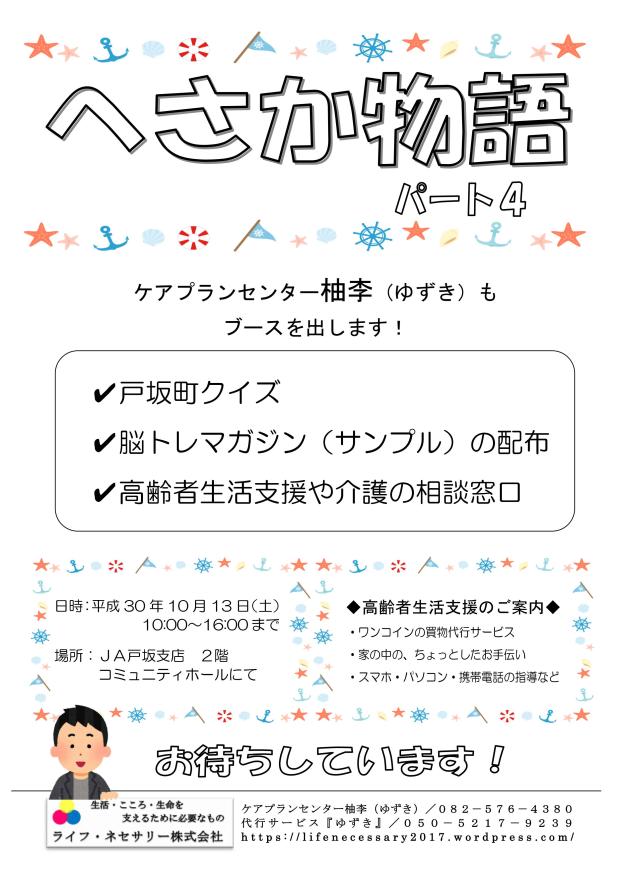 さて、きたる10/13(土)に戸坂町内で「へさか物語」という祭りが行われます。今年で四年目となりますが、このたび、ブースを出店させて頂くことになりました。