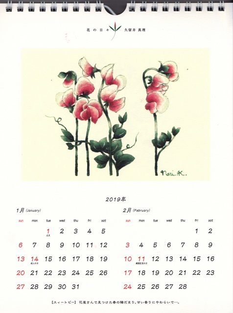 花のカレンダー2019 『花の日々』の紹介 投稿日時: 19 12月 2018 投稿者: lifenecessary2017 こんにちは、柚李(ゆずき)の児玉です。久留井真理さんの花のカレンダー2019、『花の日々』の販売窓口をさせていただくことになりました。 可愛い花のイラストが、気持ちを優しく安らげてくれます。お部屋に飾ってみませんか? 続きを読む →共有: クリックして X で共有 (新しいウィンドウで開きます) X Facebook で共有するにはクリックしてください (新しいウィンドウで開きます) Facebook いいね 読み込み中…