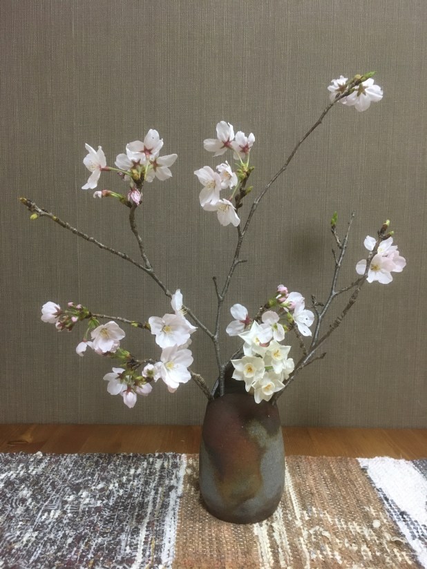 さて、新しい年号が『令和(れいわ)』と発表され、新しい時代の幕開けといった世間の賑わいですが、うちの事務所では、花器に生けた桜の枝の蕾から、少しずつ花開いてきました。