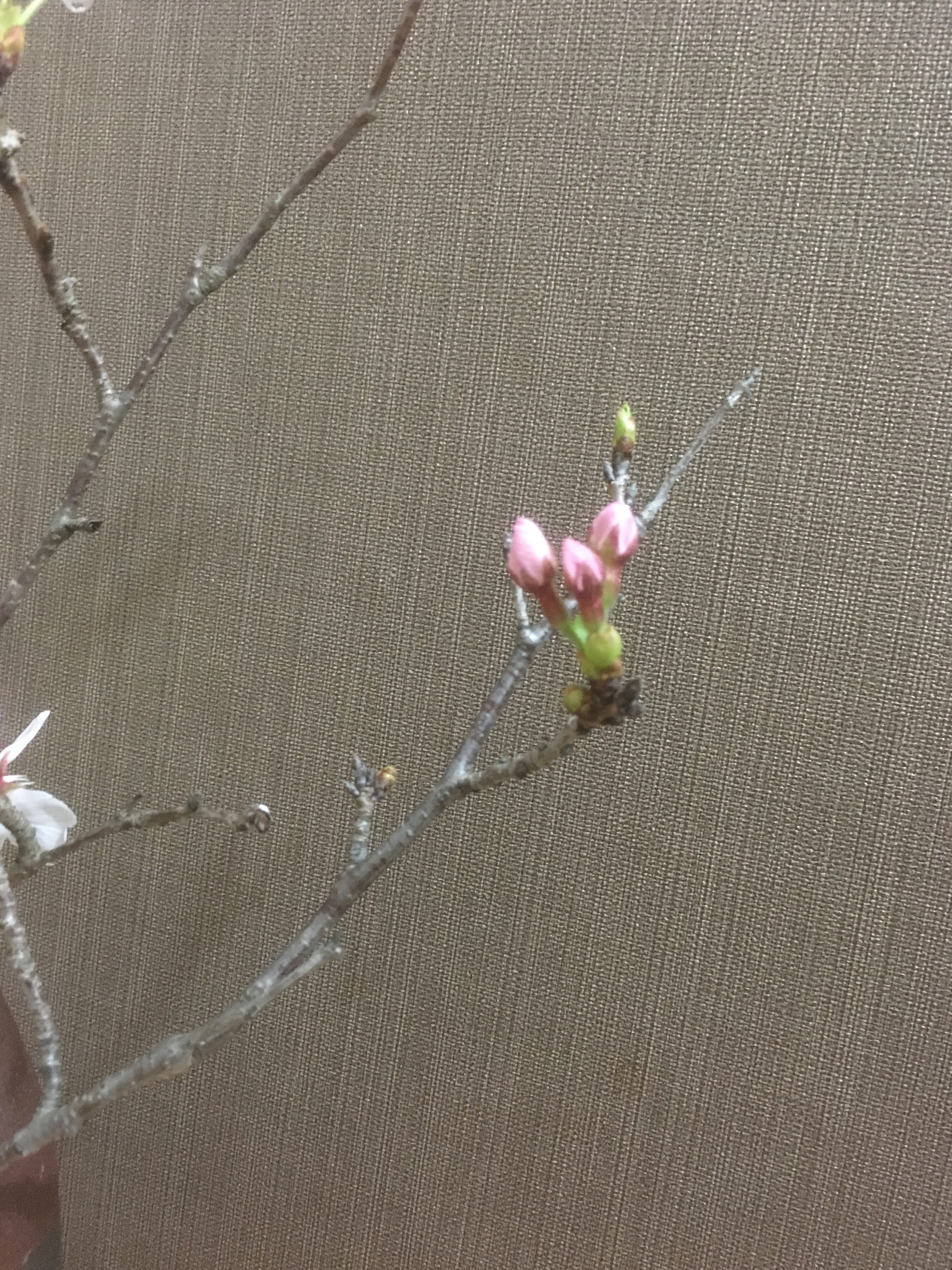 さて、新しい年号が『令和(れいわ)』と発表され、新しい時代の幕開けといった世間の賑わいですが、うちの事務所では、花器に生けた桜の枝の蕾から、少しずつ花開いてきました。