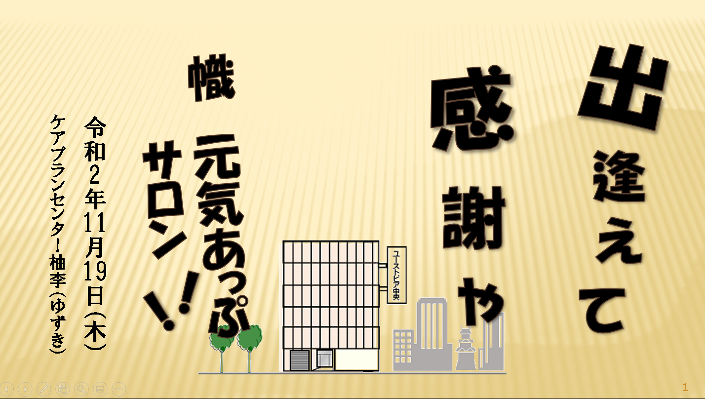 こんにちは、柚李(ゆずき)の児玉です。 暖かくて過ごしやすい、小春日和が続いてましたが、いよいよ、冬の寒さとなりつつあります。皆様、体調はいかがでしょうか? さて、このたび、幟町地域包括支援センター圏域の 『幟元気あっぷ … 続きを読む 幟元気あっぷサロンにて、脳トレのレクをさせていただきました⭐️